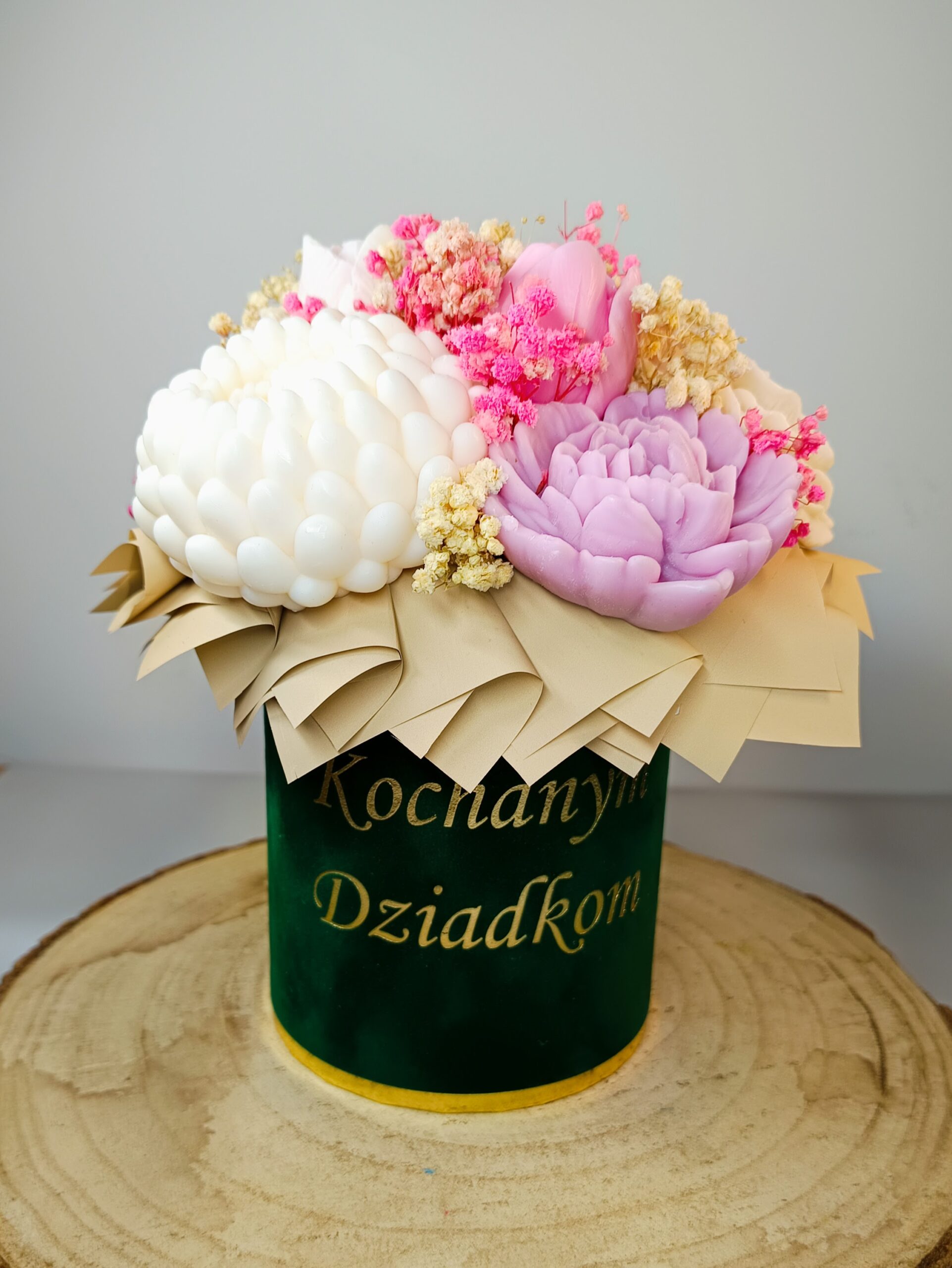 Tego typu flowerbox jest świetnym prezentem, który łączy funkcje dekoracyjne z aromaterapią. W odróżnieniu od świeżych kwiatów, kwiaty z wosku zapachowego są trwałe i mogą cieszyć oko oraz nos przez długi czas.